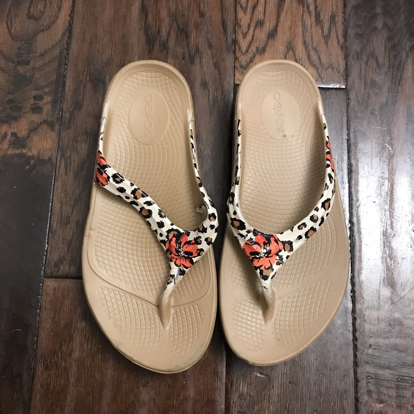Oofos Women’s Leopard Print Flip Flops Shoes