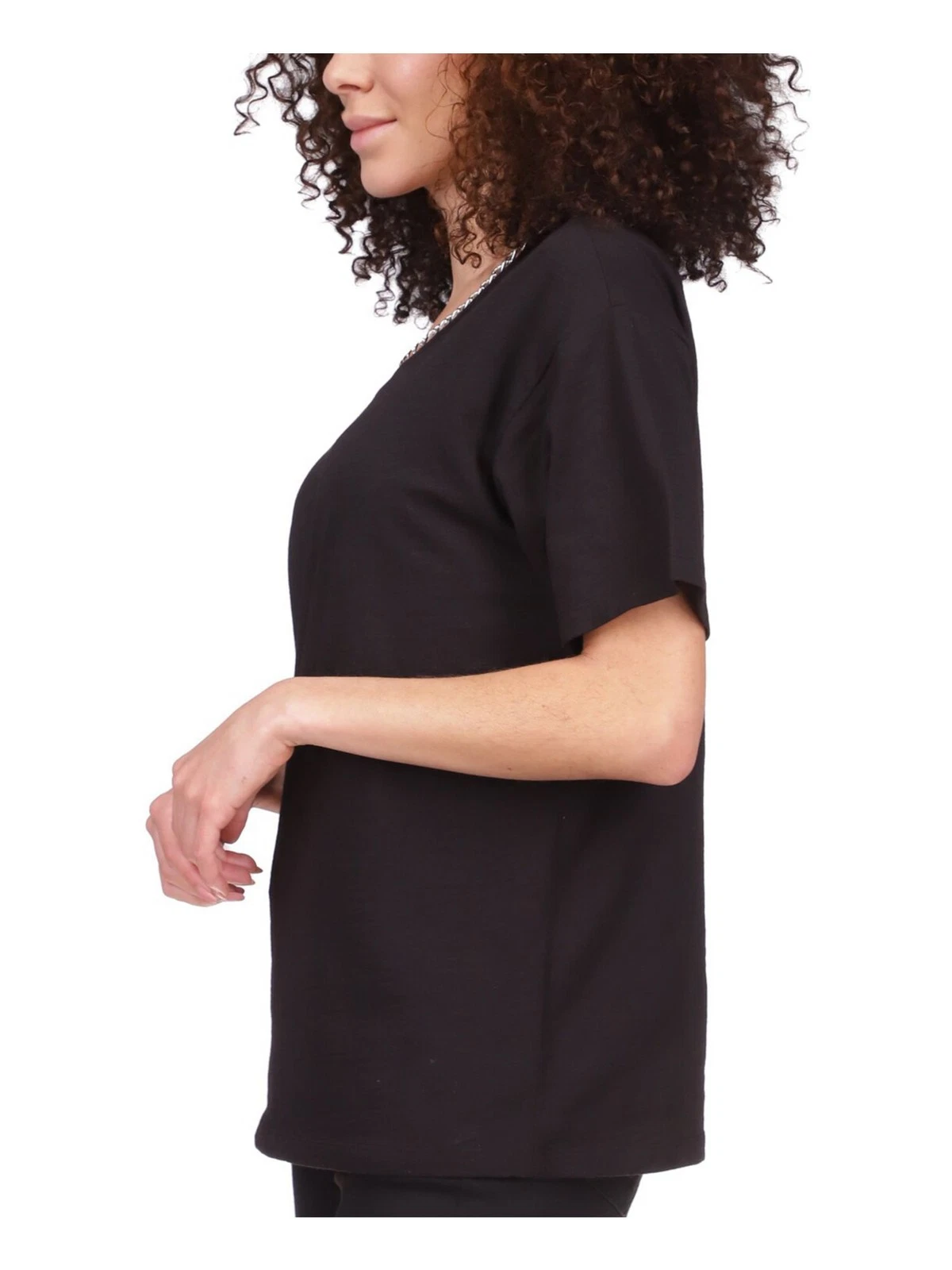 MICHAEL MICHAEL KORS Womens Black Pullover Chain Short Sleeve T Shirt S