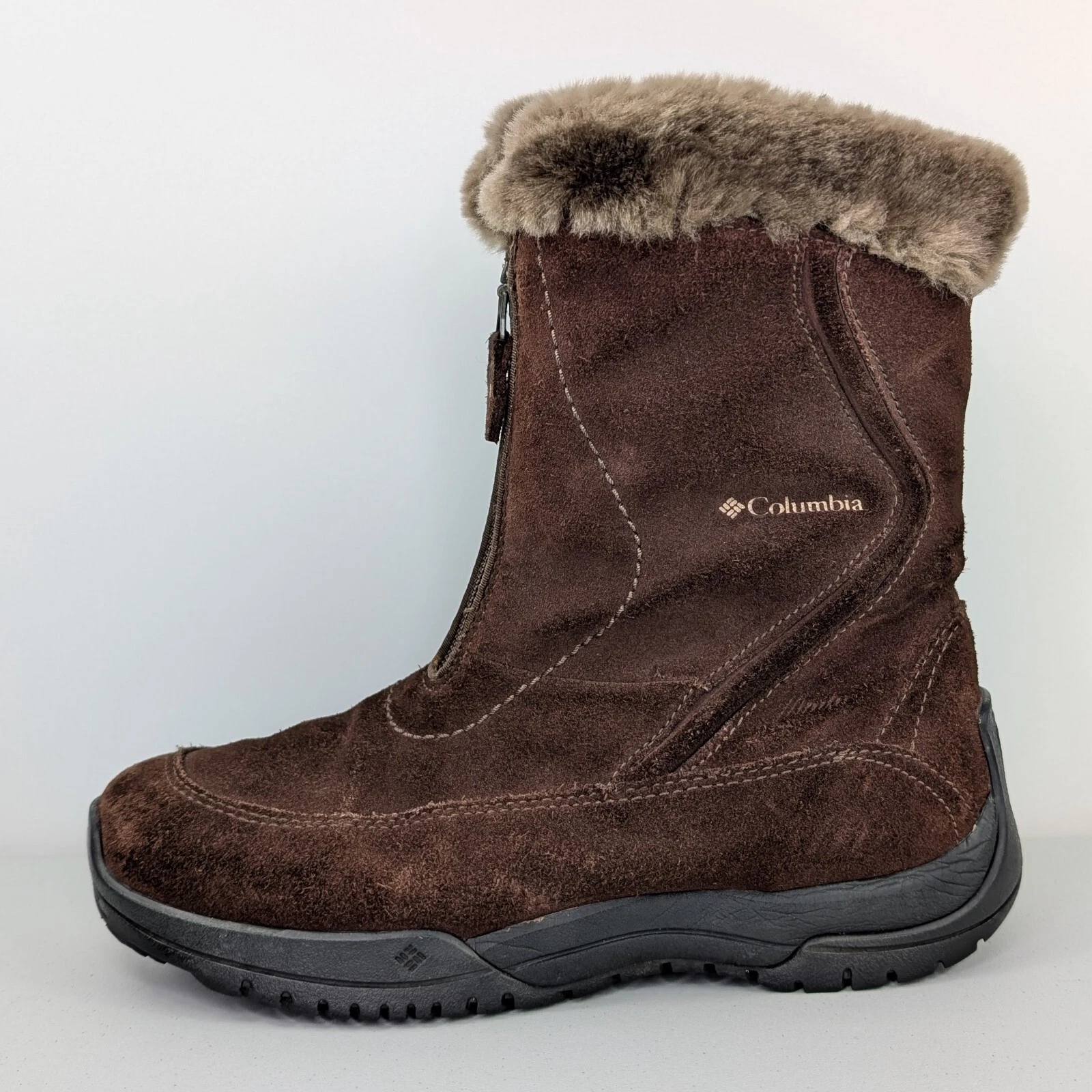 Columbia Teraval Winter Snow Boots Womens Size 7.5 Suede Brown Zip Insulated