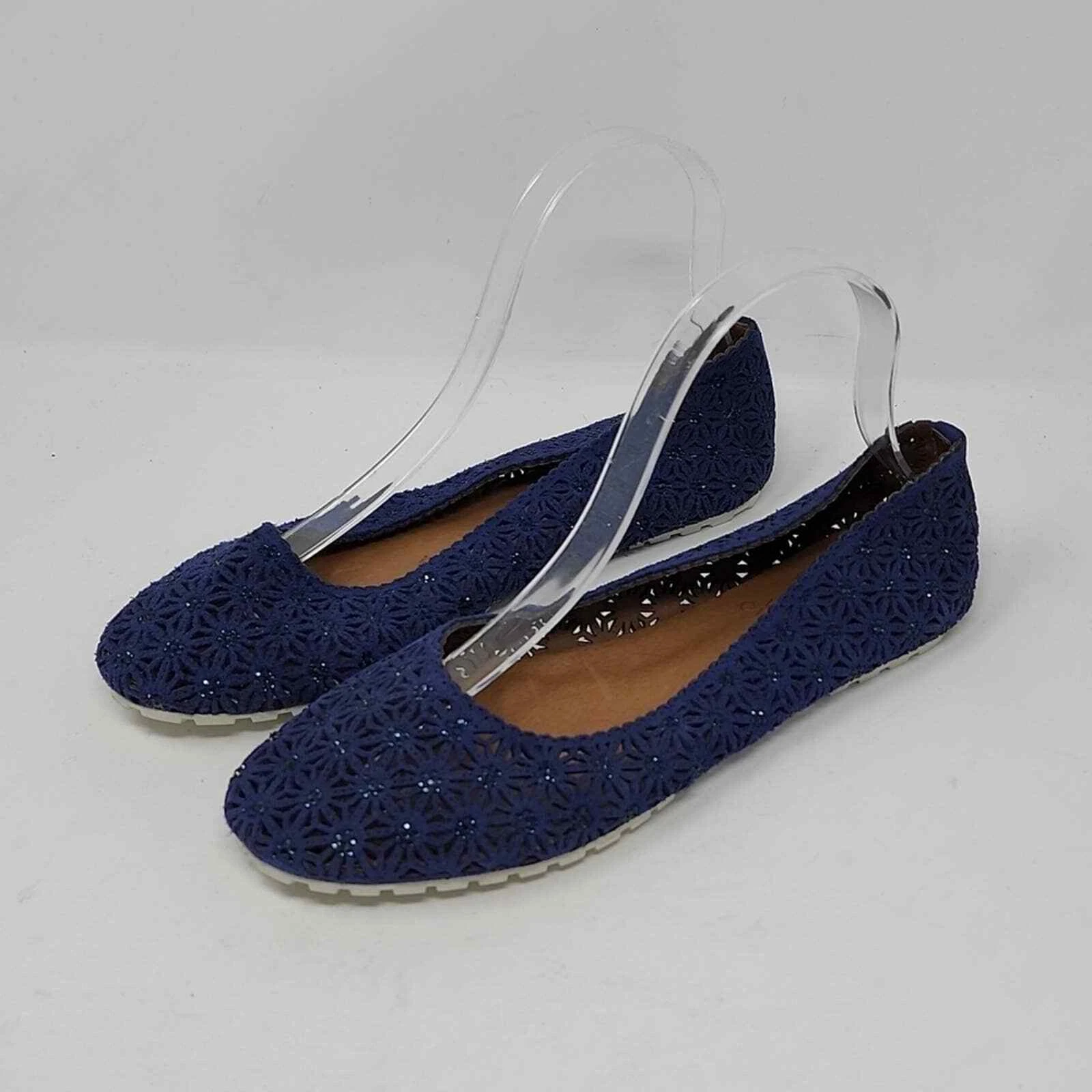 Vince Camuto Blue Laser Cut Beaded Flats Blue Size 8