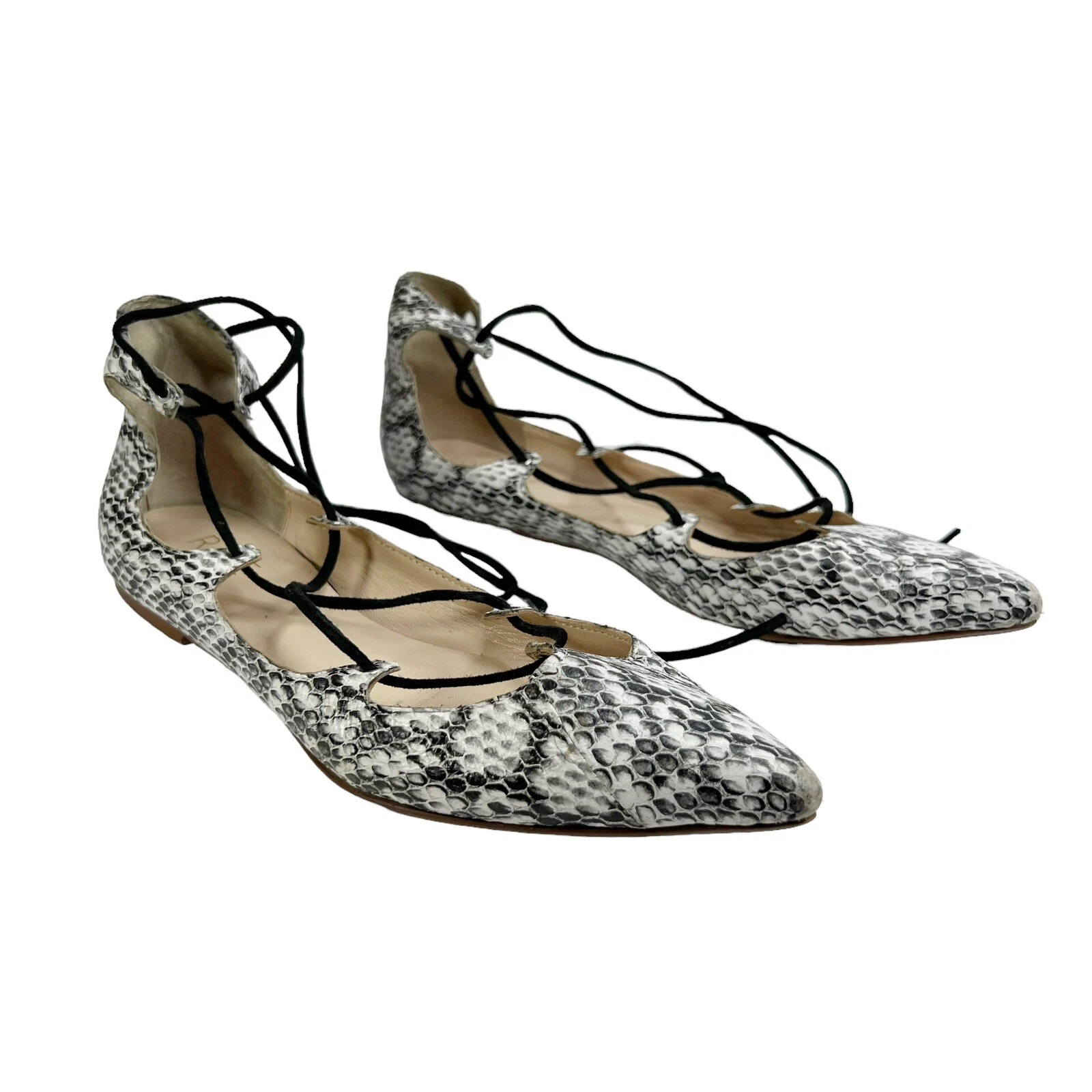 Raye Paige Leather Black & White Snakeskin Lace Up Flats Size 38 Pointed Toe
