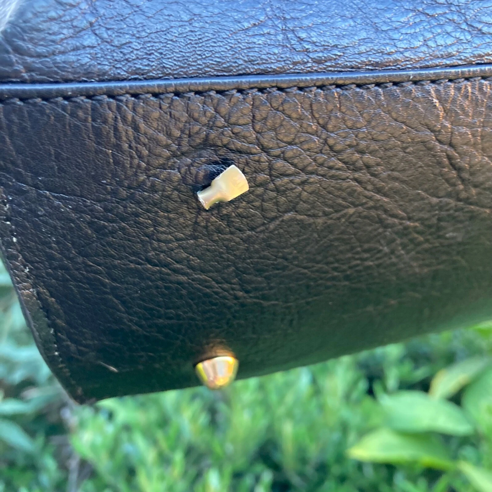 “Has scratches and areas of rub/wear. The Anna label paint is wearing off. Missing one foot at the … “Has scratches and areas of rub/wear. The Anna label paint is wearing off. Missing one foot at the bottom of the bag. It has it’s strap and the interior is clean.”