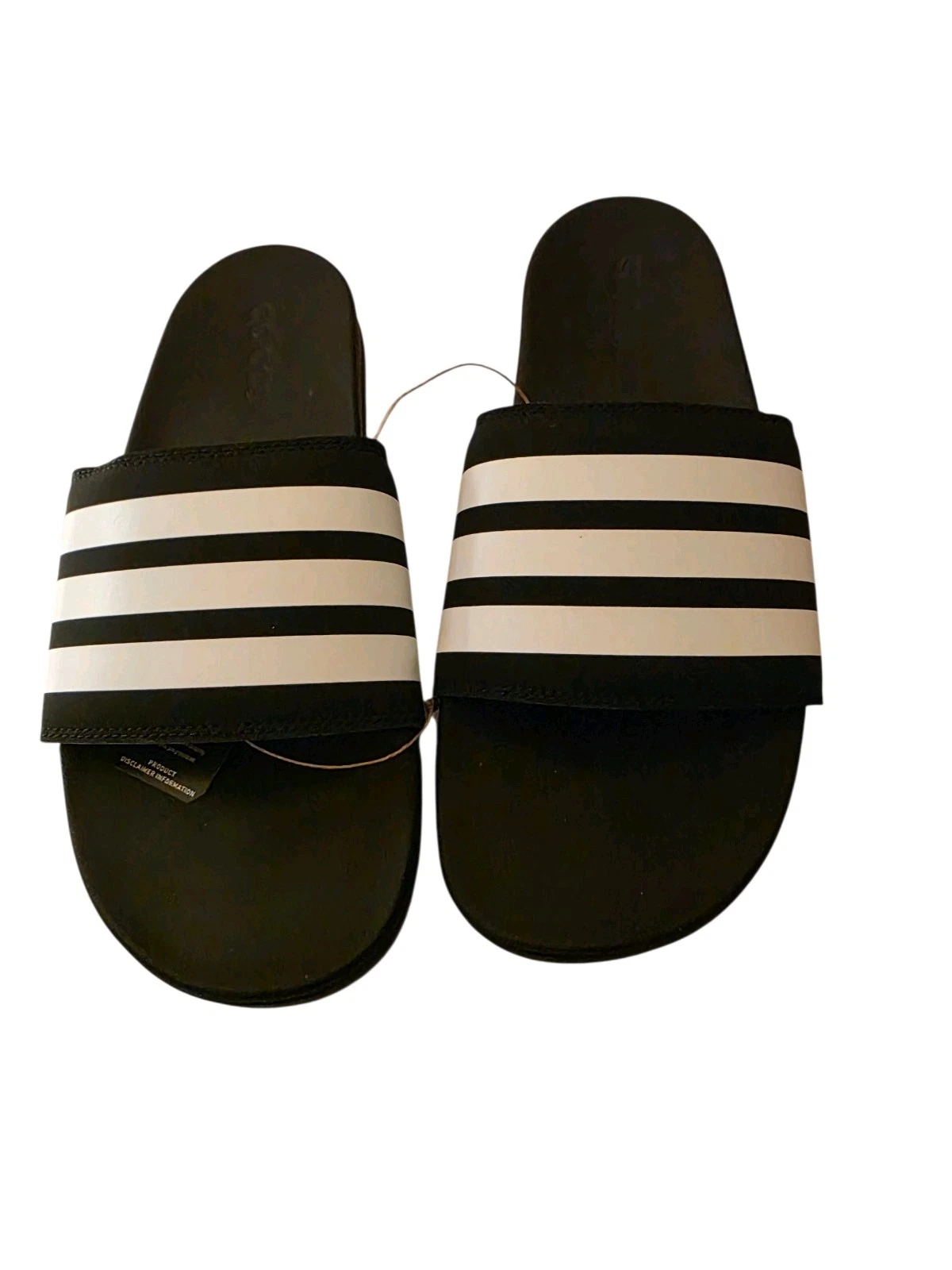 adidas Adilette Comfort Slide Sandals Black Striped UNISEX Size M 12/ W 13. Condition is New with box. Shipped with USPS Ground Advantage.