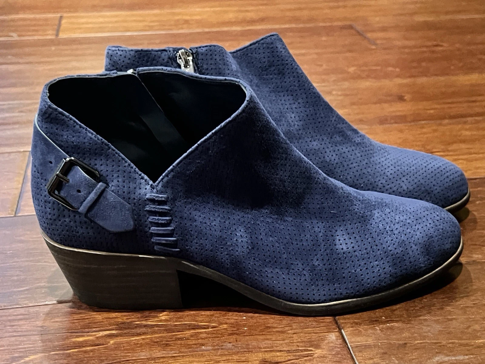 Vince Camuto VC Parveen Blue Suede Leather Women’s 8.5 W Zip Buckle Ankle Boots