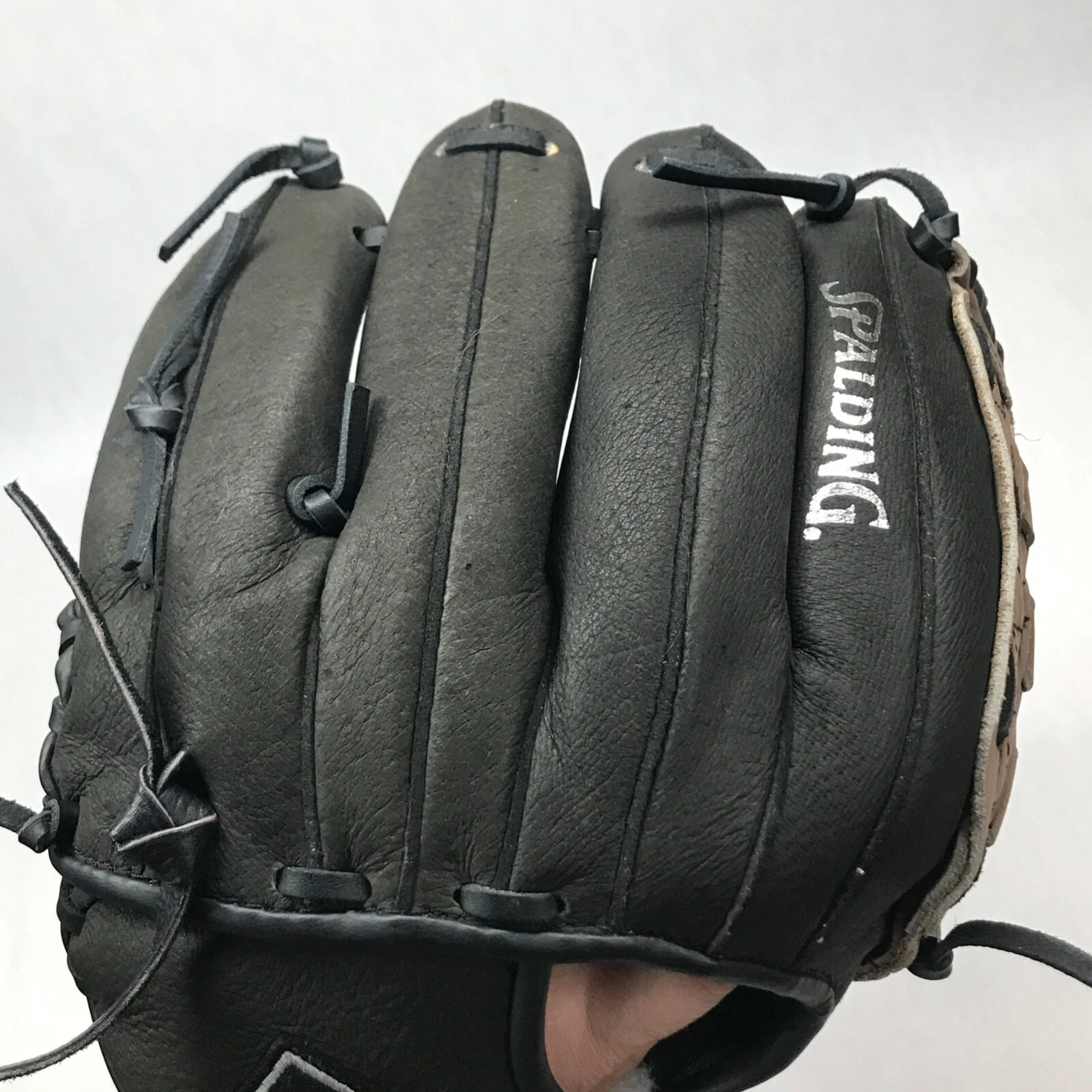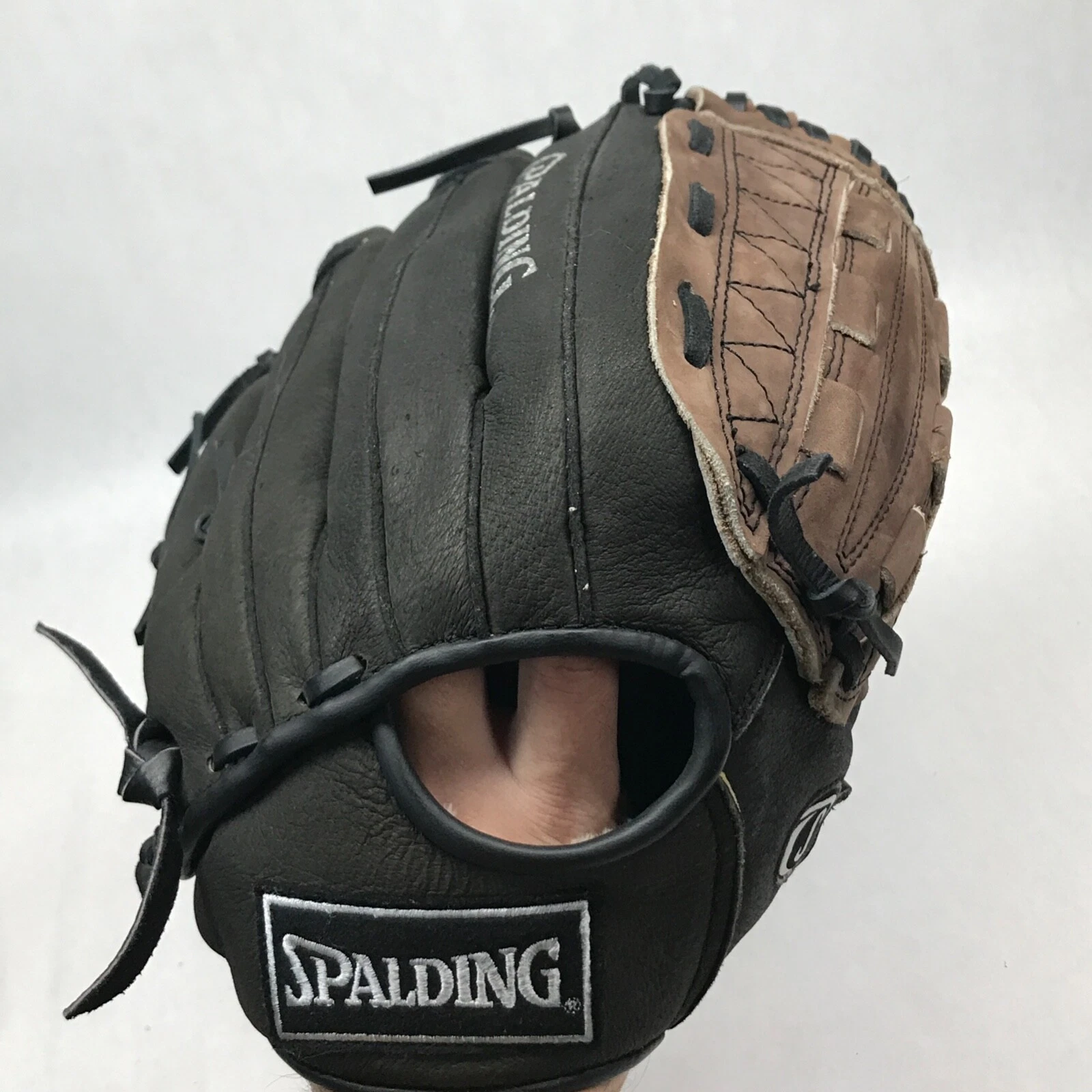 Spalding 12.5 Inch Pattern Black with Brown Web RH Baseball Glove Model 18075