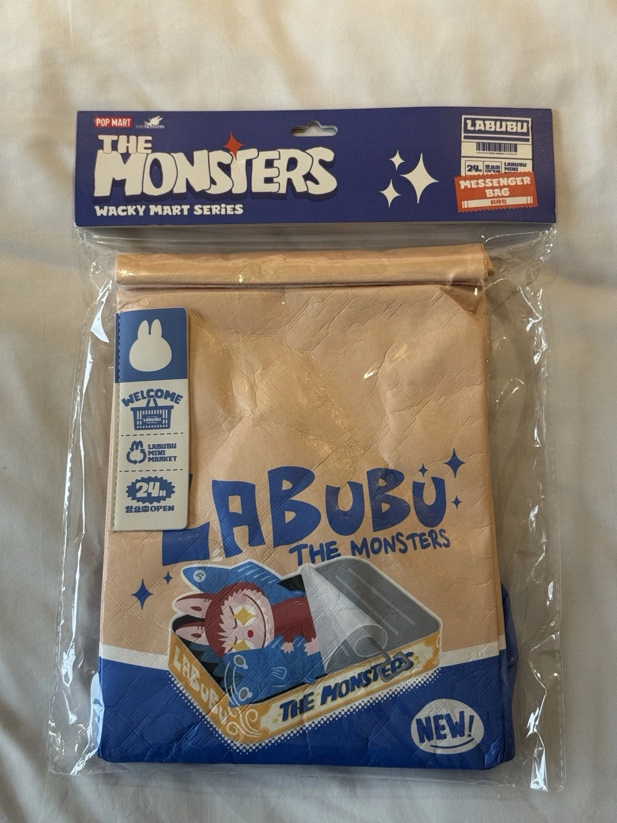 Crafted for fans and collectors alike, the Monsters Labubu Wacky Mart Series Messenger Bag is a unique addition to any collection. Featuring the iconic cream and blue colour palette, this bag is a standout piece that effortlessly combines functionality with whimsical design, echoing the playful spirit of the Monsters Wacky Mart franchise.