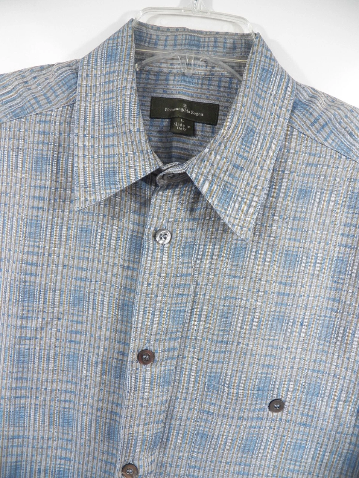 ERMENEGILDO ZEGNA MENS LUXURIOUS CASUAL LONG SLEEVE BUTTON DOWN STYLISH SKY BLUE BEIGE CHECK PLAID SPORT SHIRT
