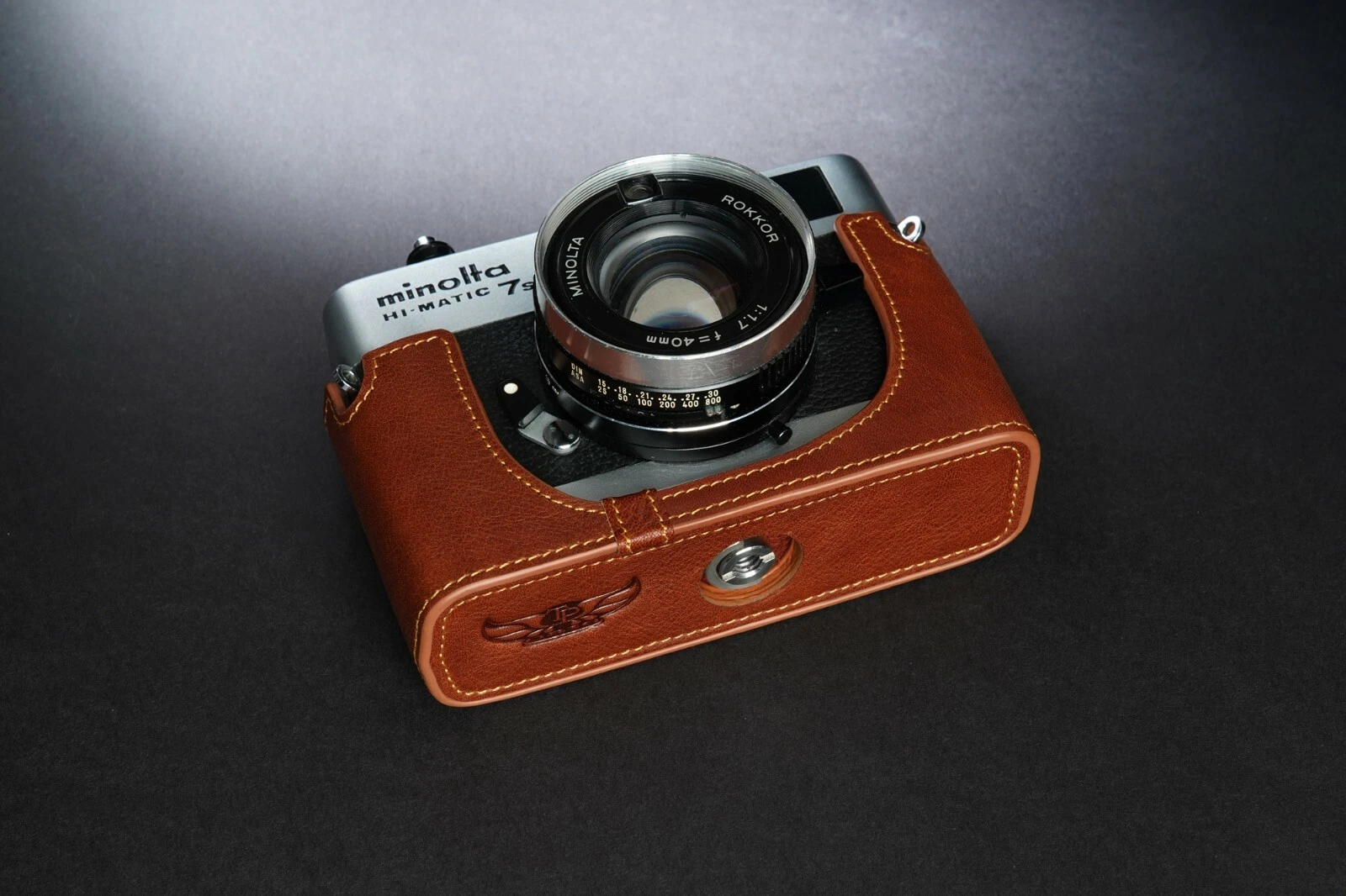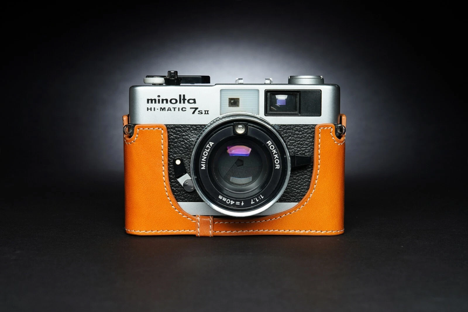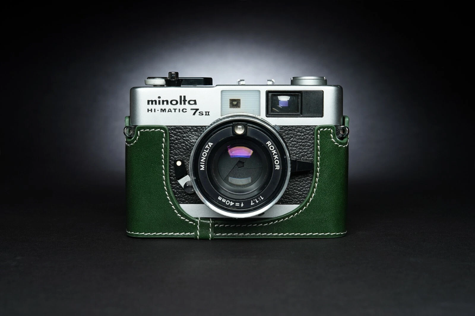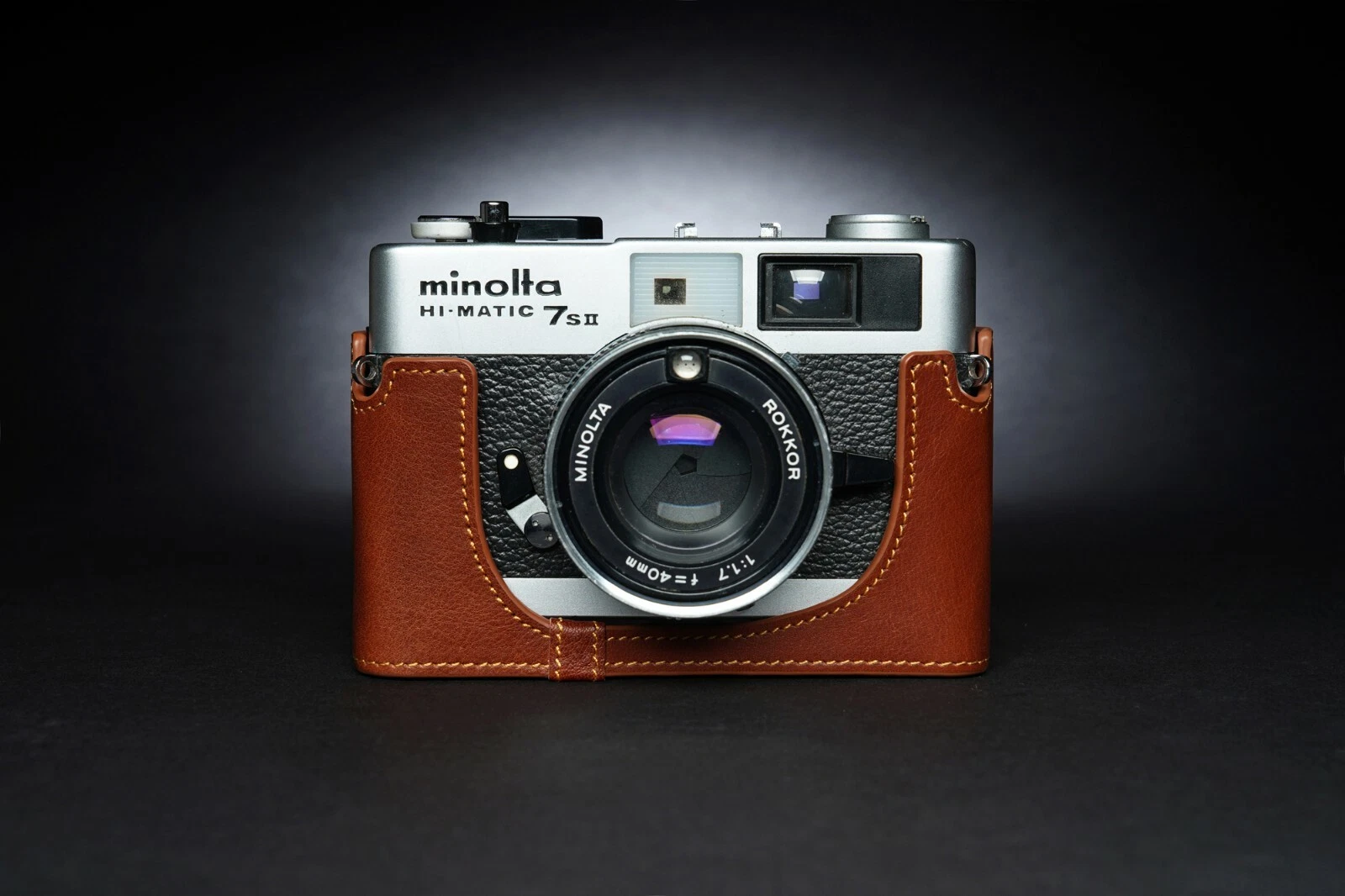 Handmade Vintage Genuine real Leather Half Camera Case bag cover for Minolta Hi-Matic 7Sii Film Camera (5 Colors)