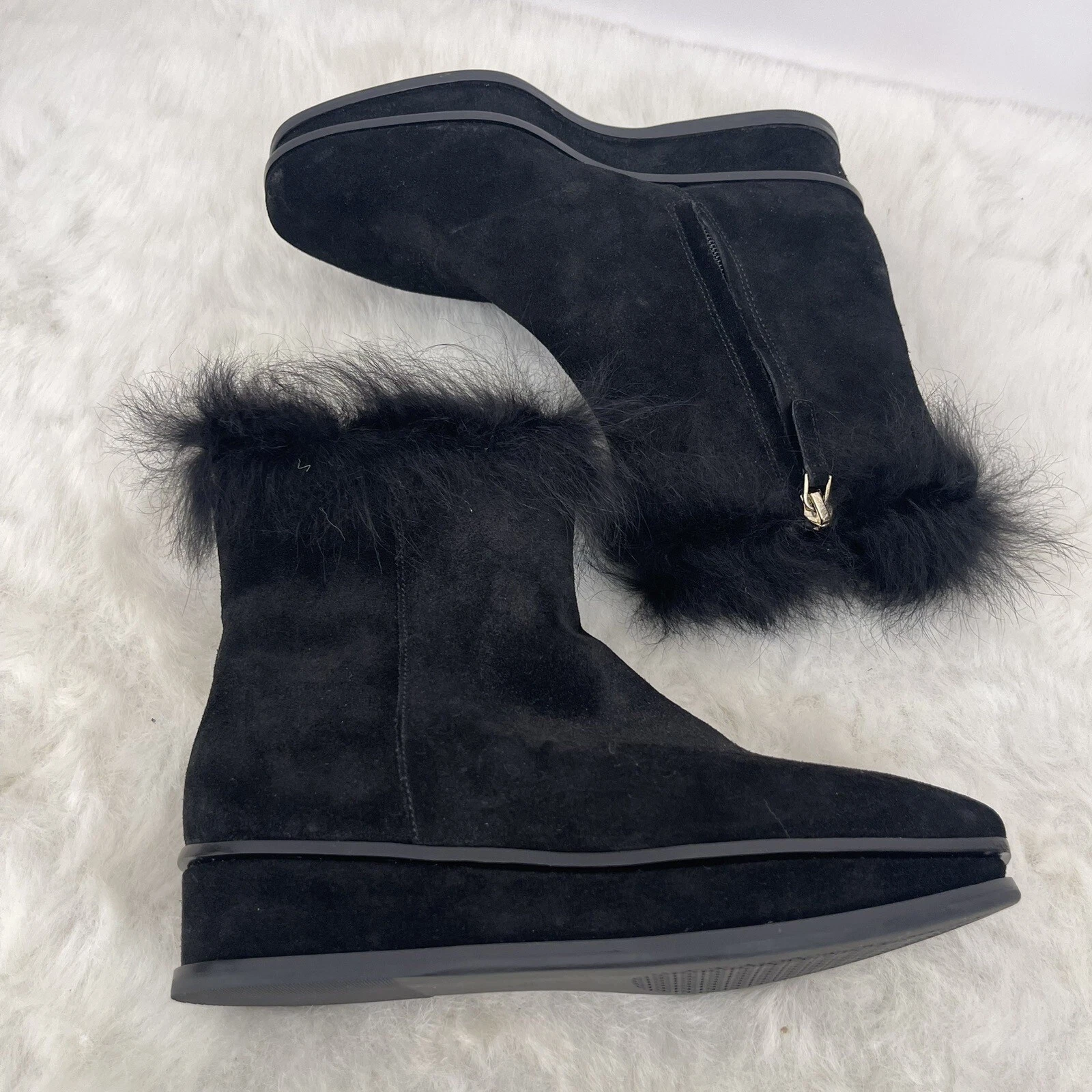 Stivaletti stivaletti Tory Burch MARCEL in pelliccia taglia 5 neri con zeppa e zeppa in seude
