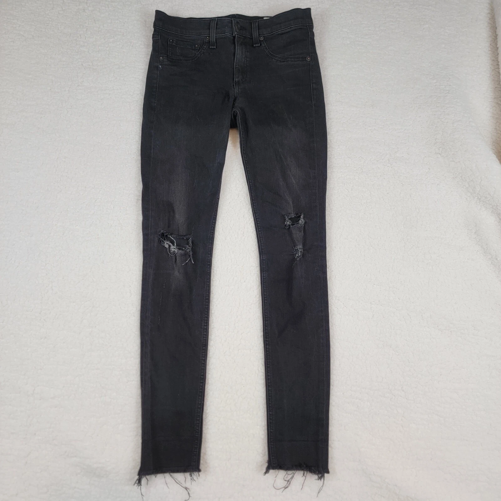 Rag & Bone High Rise Ankle Skinny Jeans Distressed Washed Black Rock w Holes 28