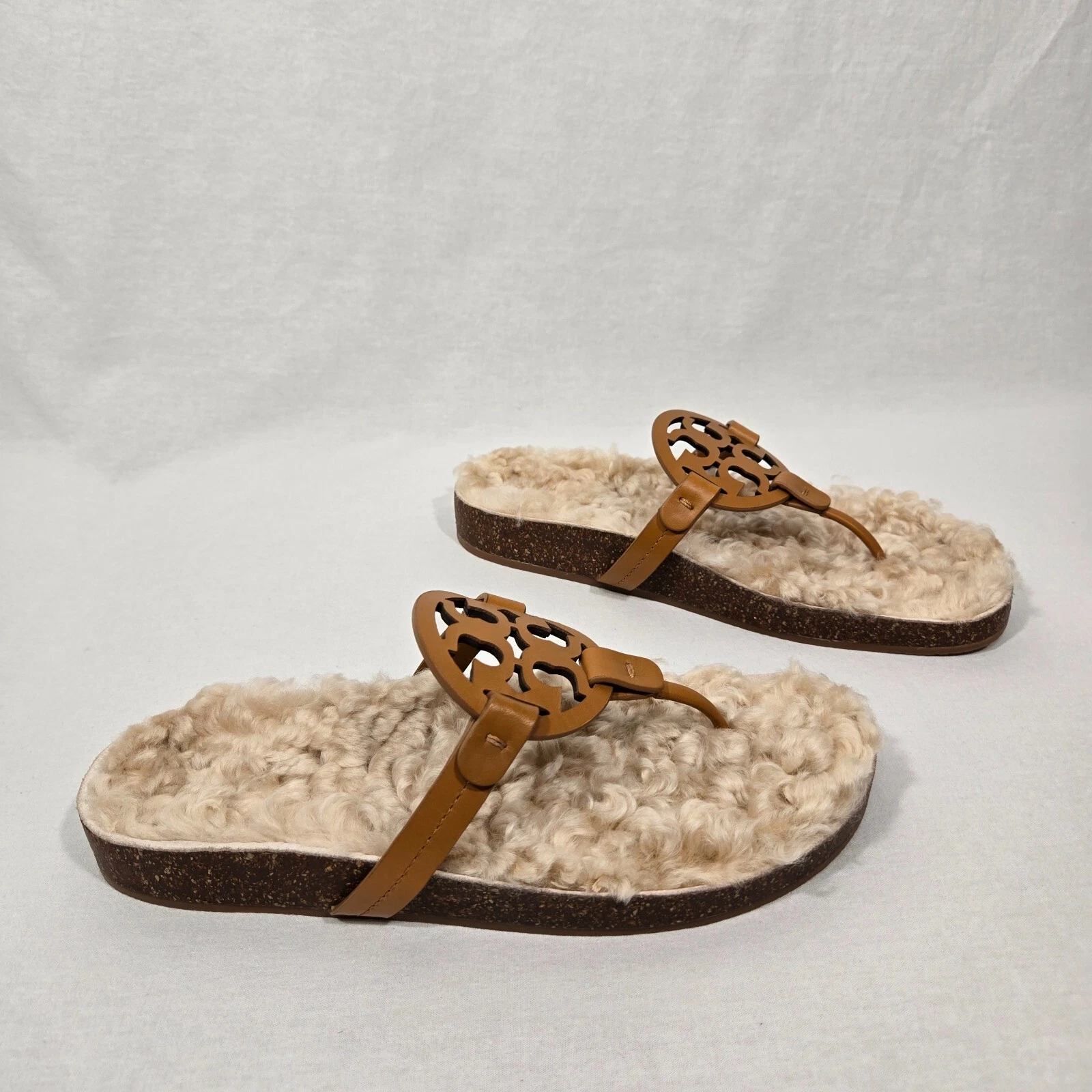 TORY BURCH Caramel Corn MILLER CLOUD Old Money Quite Luxury Elevated Basic Minimalist Scandi Girl Mobwife Loungewear Cabincore SHEARLING LEATHER Thong Slip-On Sandals Size 9.5M. Stylish & Comfort.