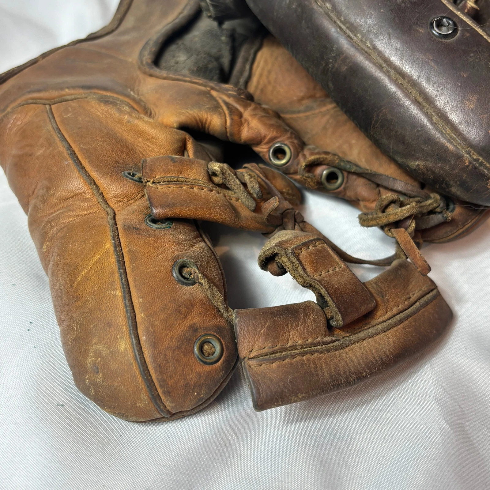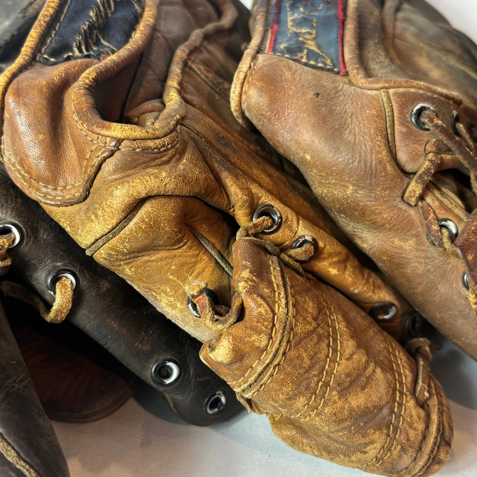 All are right handed gloves, there is missing / broken lacing, discoloration, and wear on grommets all consistent with age and use. SOLD AS IS. See all photos for condtion and ask any questions prior to purchase.