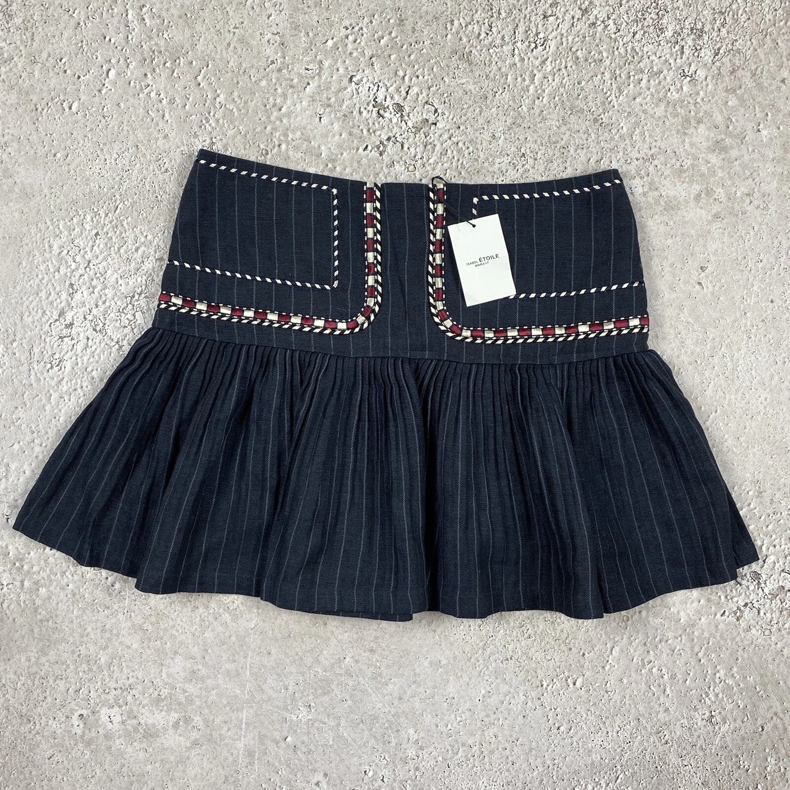 Isabel Marant Etoile NUOVA gonna di lino Avant Garde blu taglia 42 US 10 12 plissettata