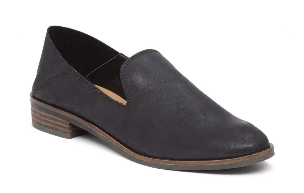 SCARPA Scarpe mocassino Lucky Brand Cahill blu in pelle con tacco pieghevole 11M minimalista