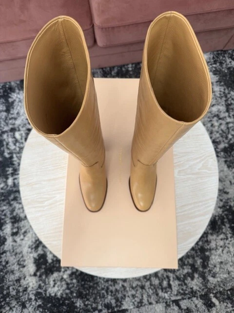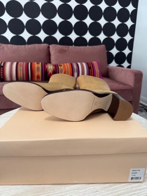 The Loeffler Randall Heidi Tall Almond Toe Boot With Welt is crafted with a vachetta leather upper with a pull-on style. These knee-high boots come with a leather insole and lining that offers superior comfort and durability.