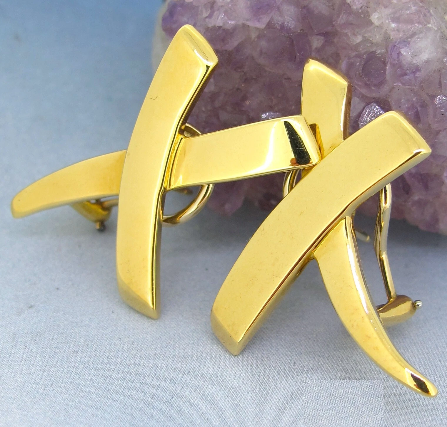 18k G Tiffany & Co. Paloma Picasso Large ‘X Style” Stud Earrings Omega Backs