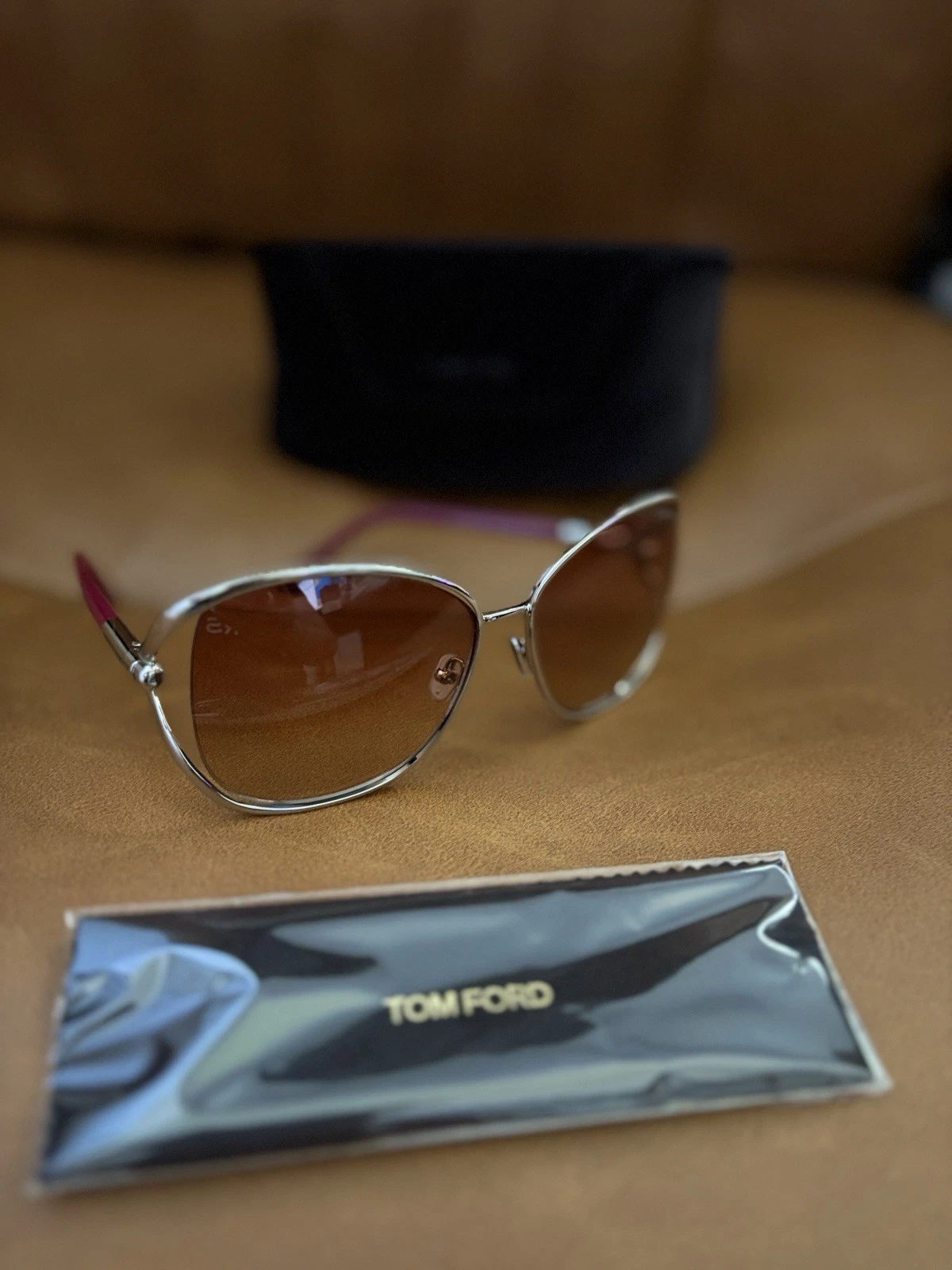 New Tom Ford Sunglasses Silver Rose Lens w Case Cleaning And Polishing Cloth