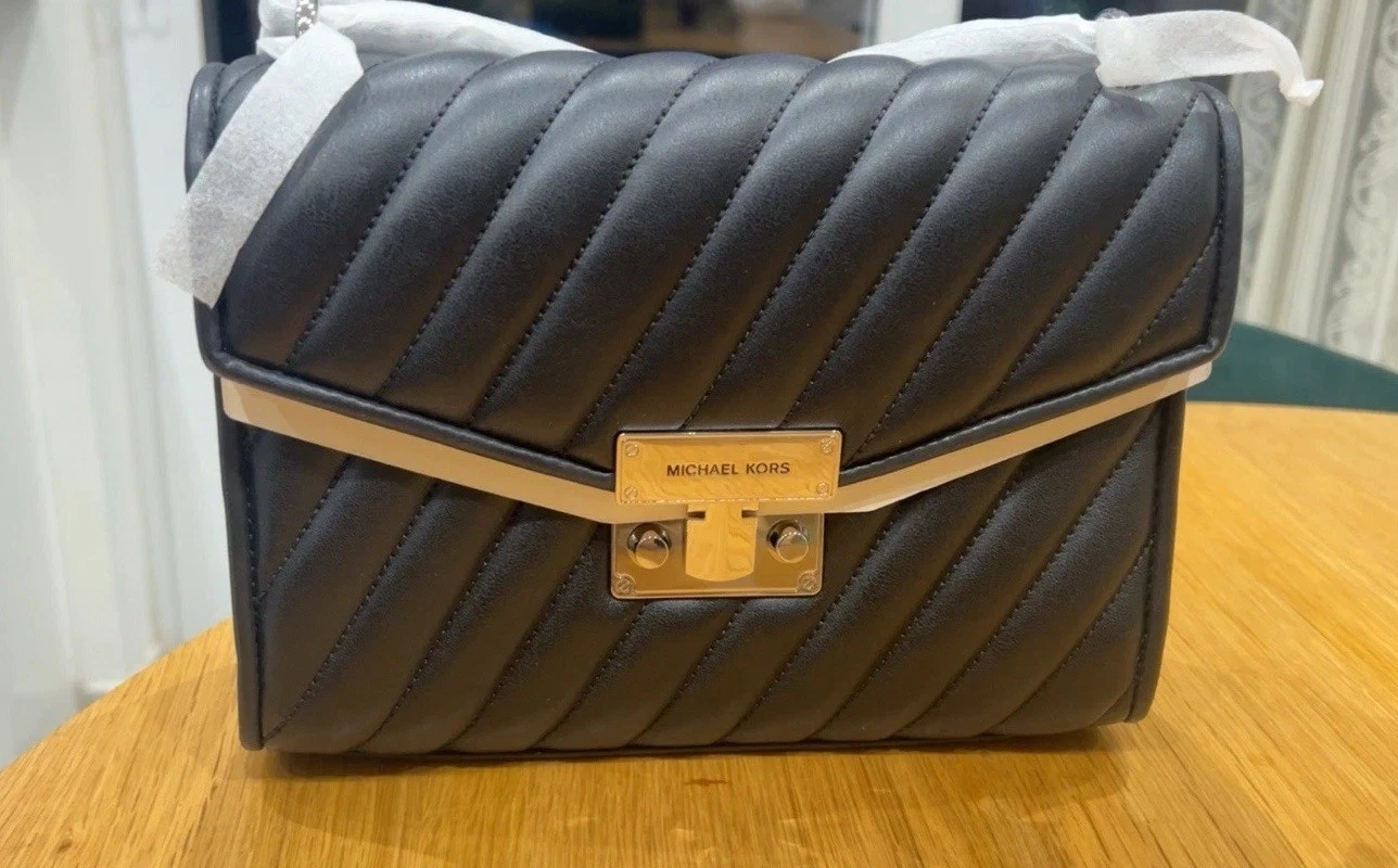 Be the first to review “Borsa a tracolla Michael Kors nera con catena argento”